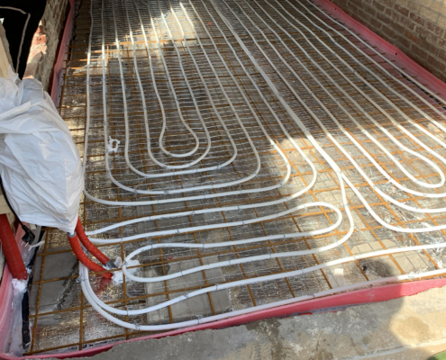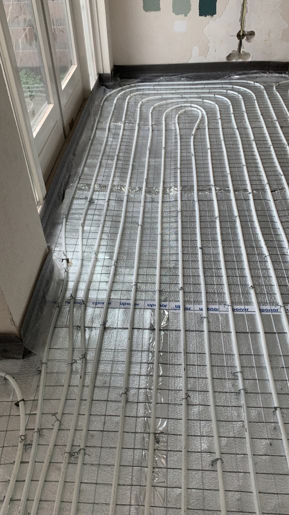 Assendelft – vloerverwarming / koeling gebonden op folie en netten op schuimbeton